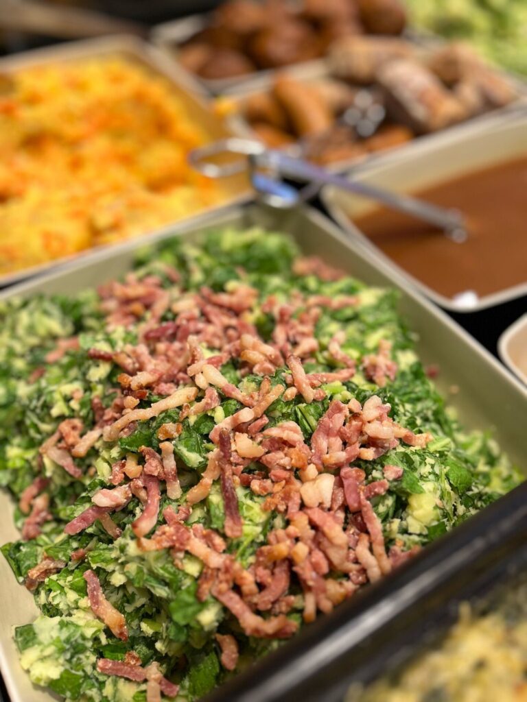 * stamppot van boerenkool met uitgebakken spekjes en rookworst