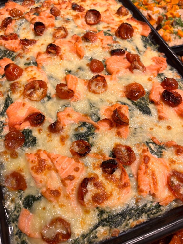 * spinazie schotel met puree, zalm en kaas